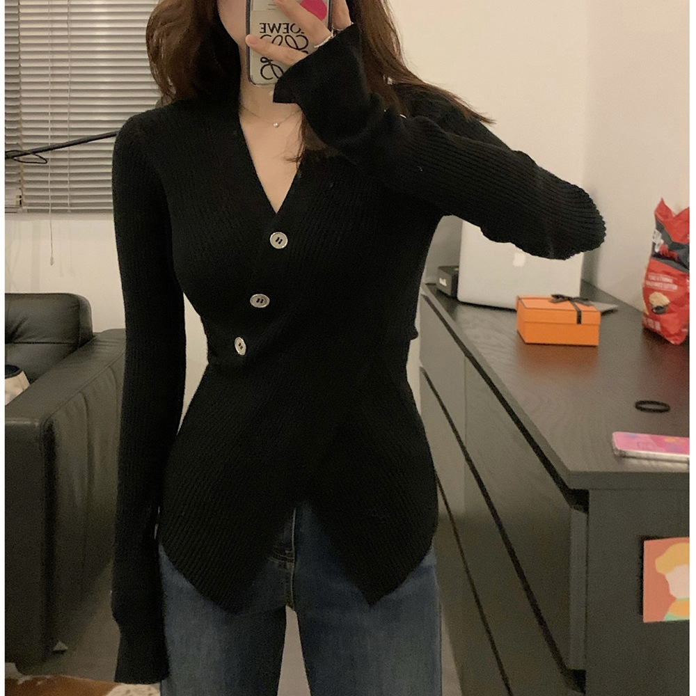 やせた紙片人vネックa 4腰修身坑条純欲風ニットセータークロス長袖上着