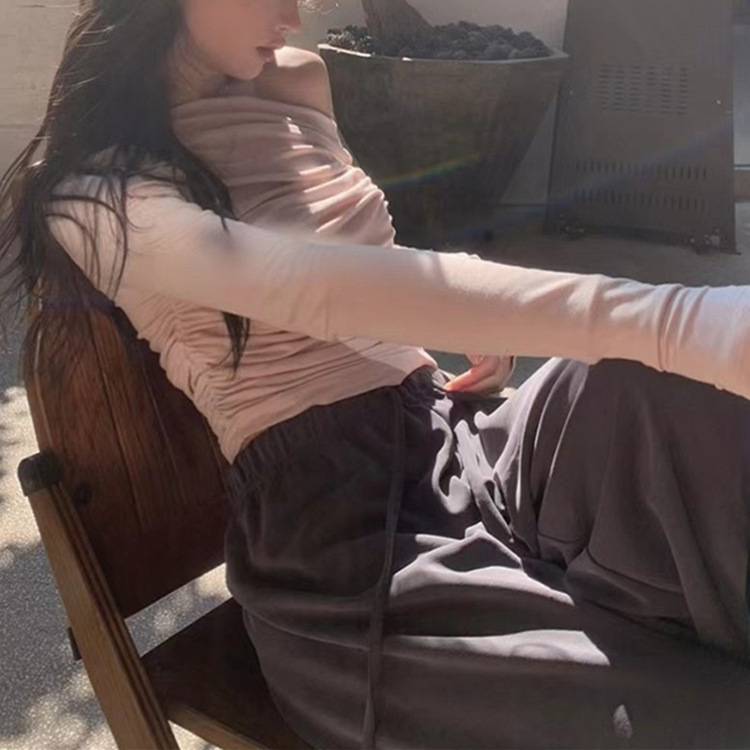 斜め肩のしわのニットの女性の超火のデザイン感の小さい大衆感の洋風の減齢の小さい上着