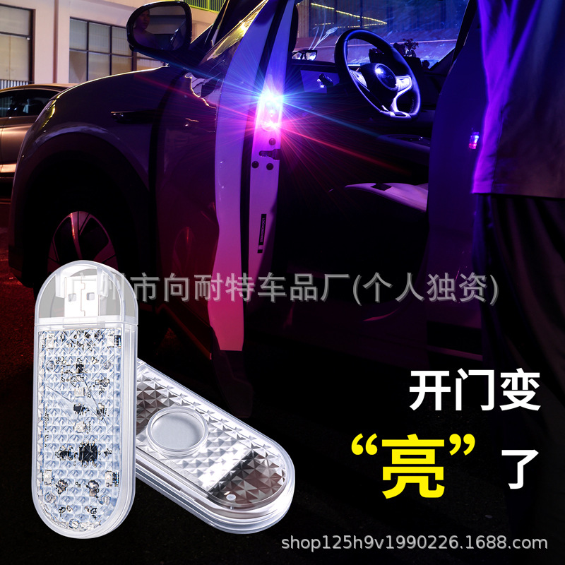 新車 USB フラッシュライトドア後部衝突防止衝突防止警告灯ドア開口部赤と青の点滅ライト磁気雰囲気ライト
