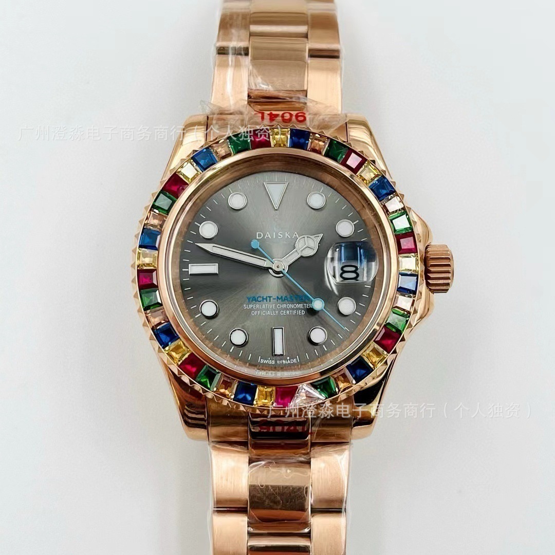 ビジネス高級レインボーダイヤモンドジェリービーンシリーズダイヤモンドヨットスチールバンド全自動機械式メンズサファイアデイシュカ腕時計