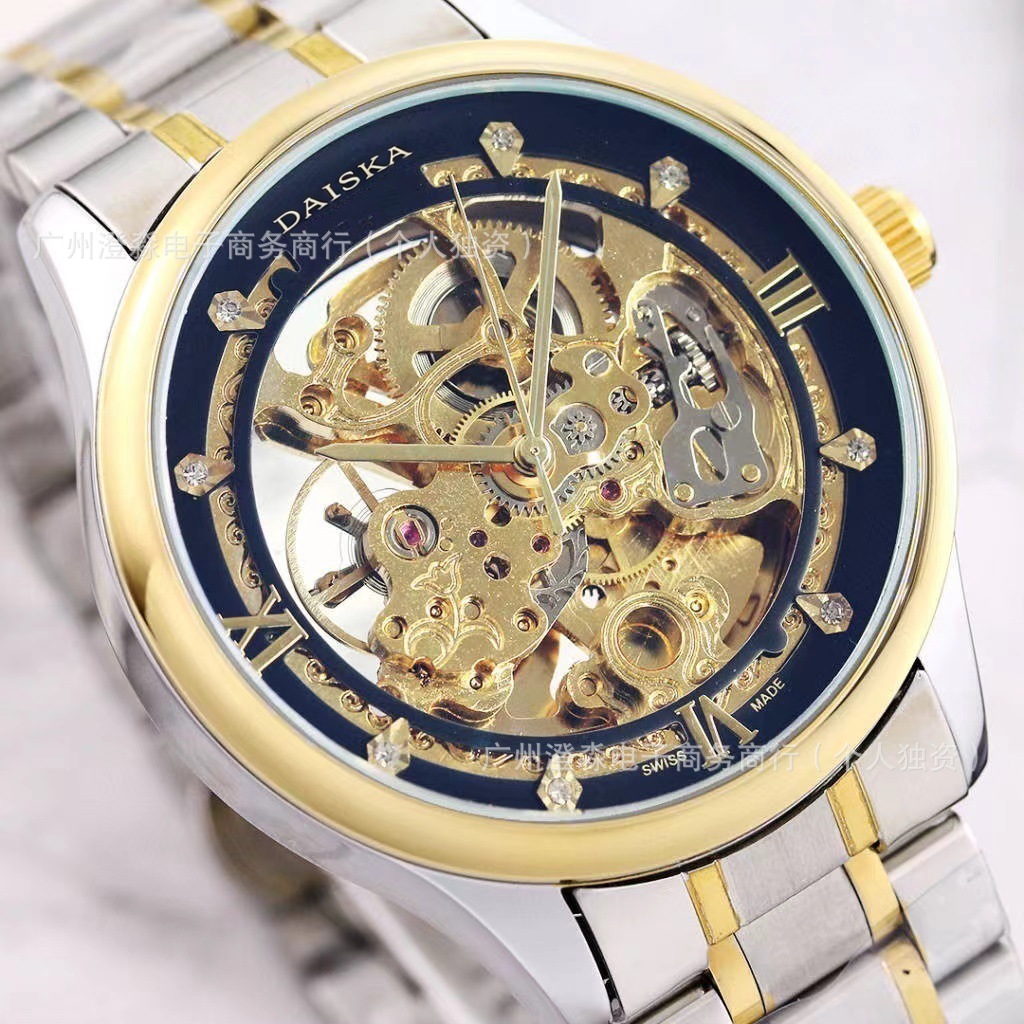 外国貿易の新しいファッション中空底全自動機械式スチールベルトメンズ防水時計 Langjia Daisika 時計