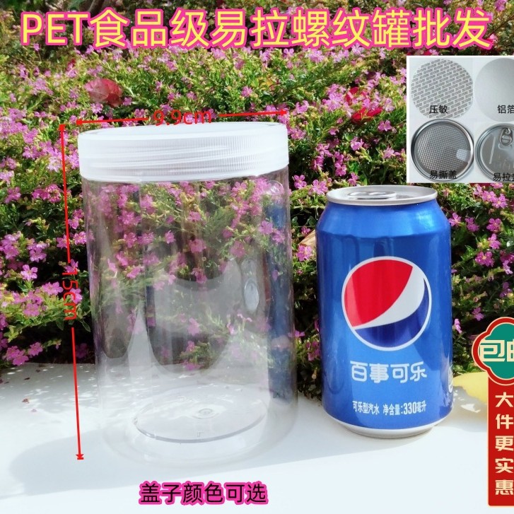 8618メーカー卸売り食品級円形透明ペットボトル雑穀ナッツ花茶使い捨て密封缶