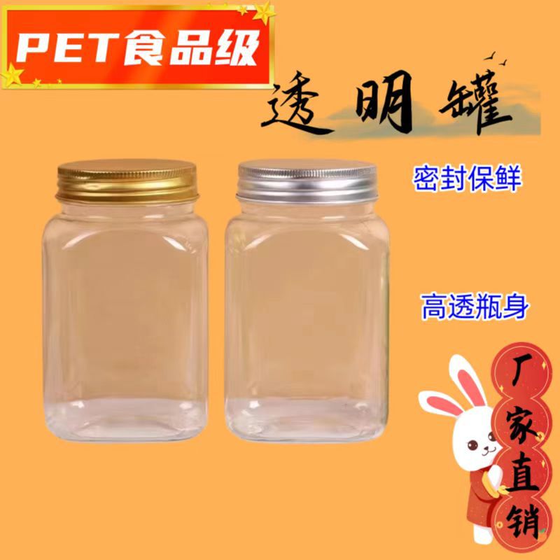 メーカースポット卸売り角瓶petプラスチック透明角瓶蜂蜜雑穀キャンディー花茶漬物密封缶