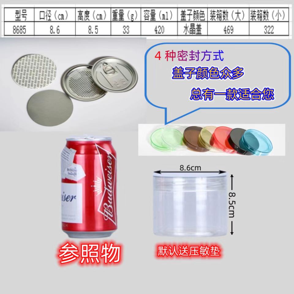 8685メーカー卸売食品級透明水晶蓋プラスチック瓶ドライナッツ間食使い捨て密封缶