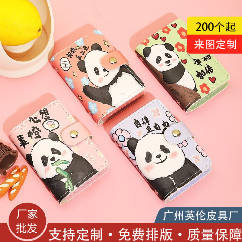 パンダカードスリーブ大容量カードケースミニ可爱いマルチカード位置一体型バッグ身分证明书运転证カバー女性名刺入れ