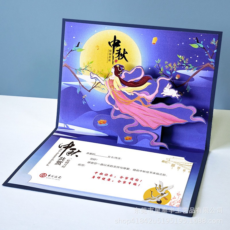 中秋節のグリーティングカード立体中国風創意嫦娥奔月感謝カードは従業員のお客様にカスタマイズを祝福します。