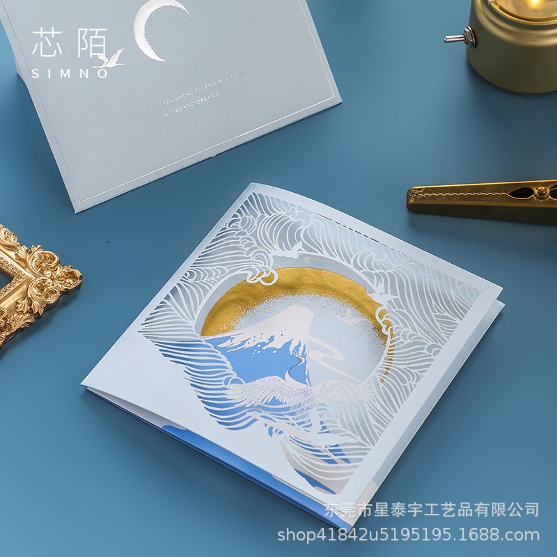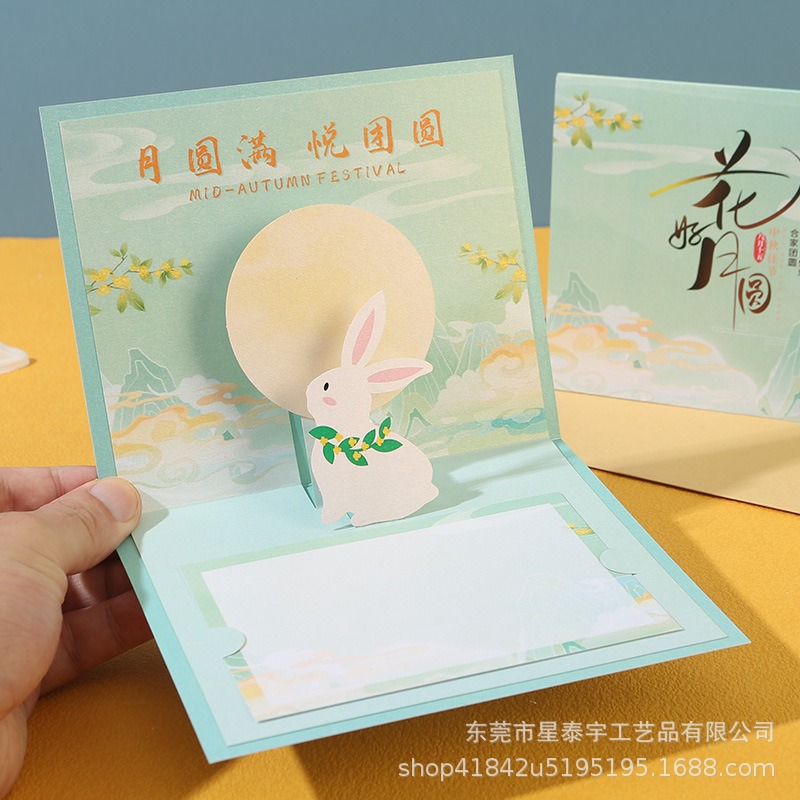 3D立体中秋節グリーティングカード会社企業ビジネス中国風ギフトカードは従業員の顧客に贈る