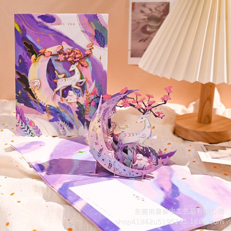 月照鹿栖立体グリーティングカード創意3dカード誕生日おめでとうございます。