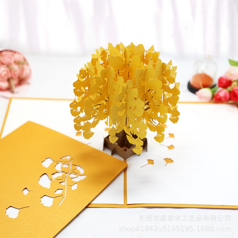 クリエイティブイチョウ3d立体グリーティングカードは先生の友達の誕生日に手作りの紙彫刻レーザーカードのメッセージカード母の日
