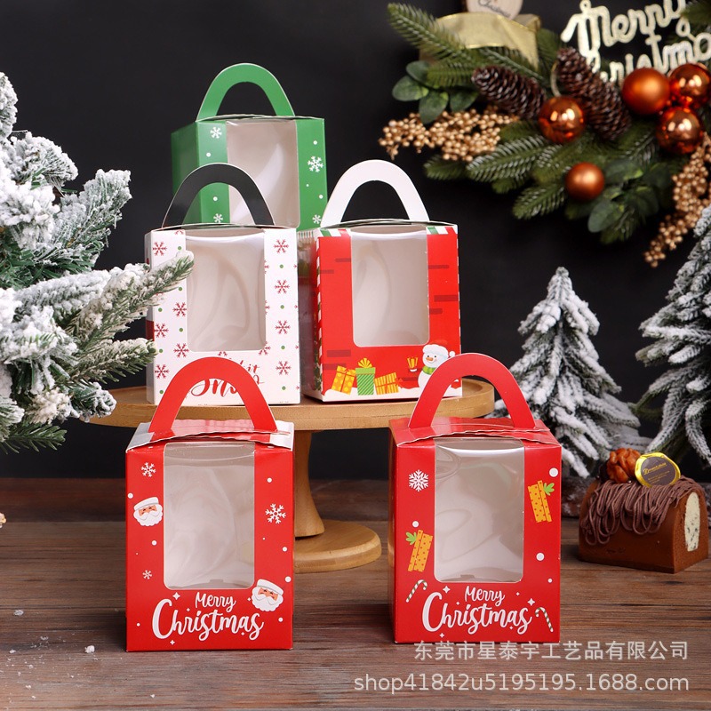 クリスマス1粒入りの手提げ窓紙コップケーキ包装箱マフィン箱卵箱焙煎スイーツ包装箱