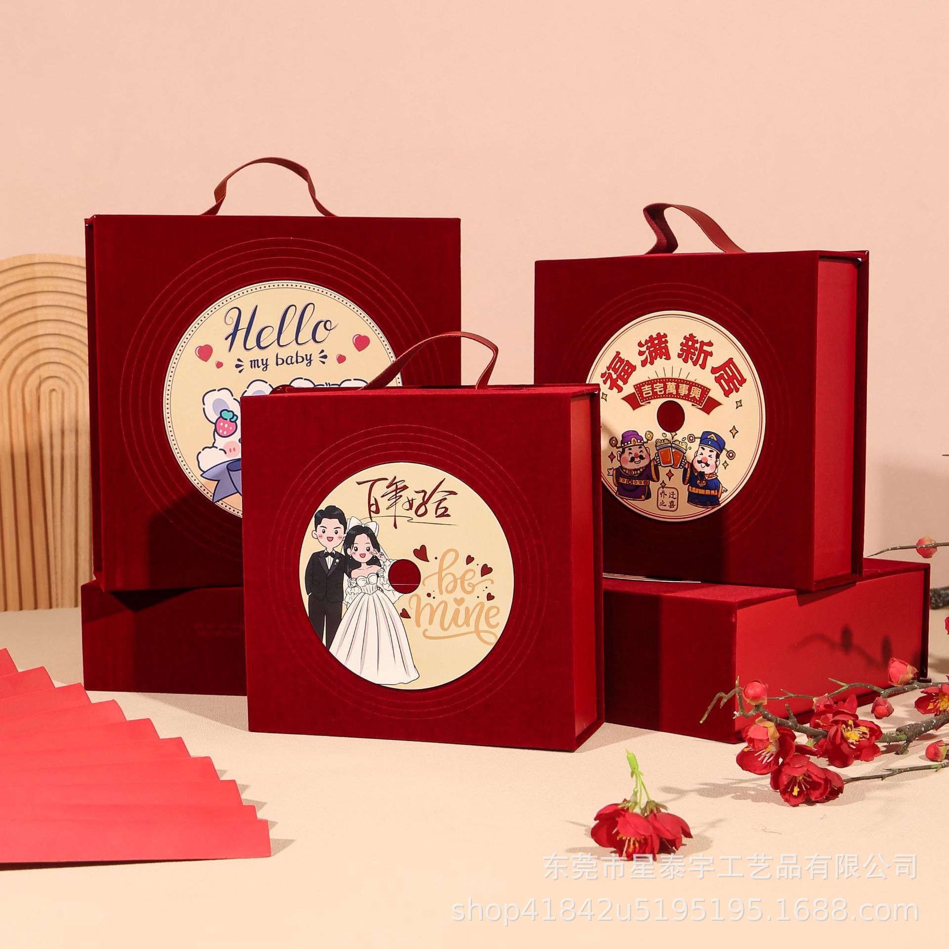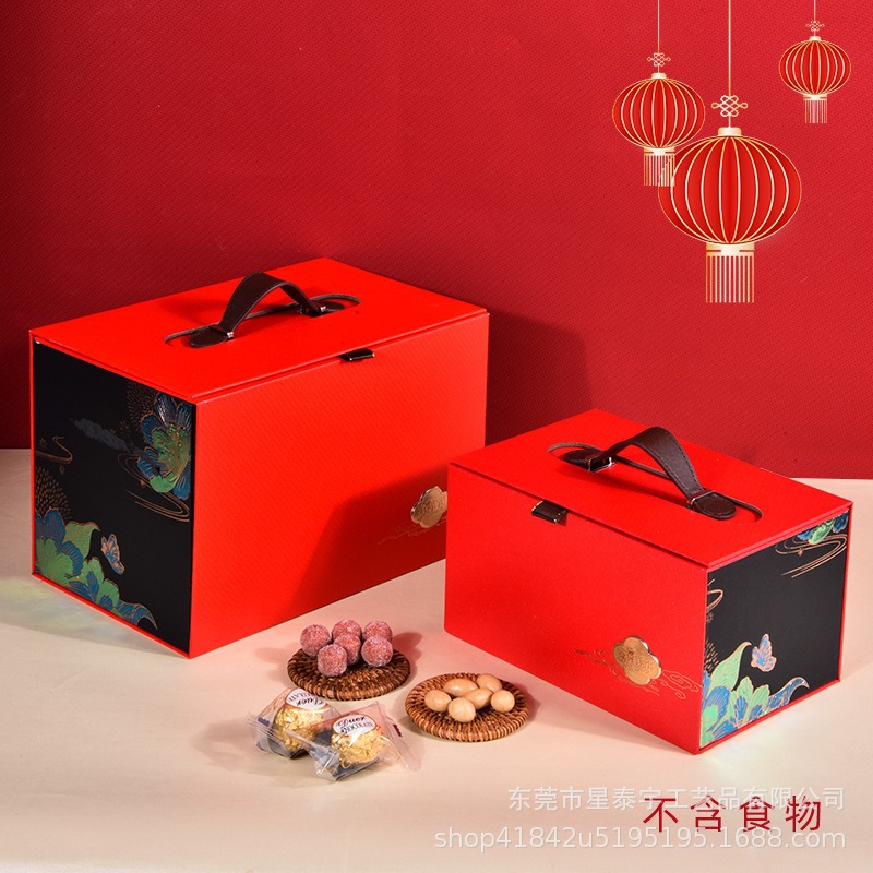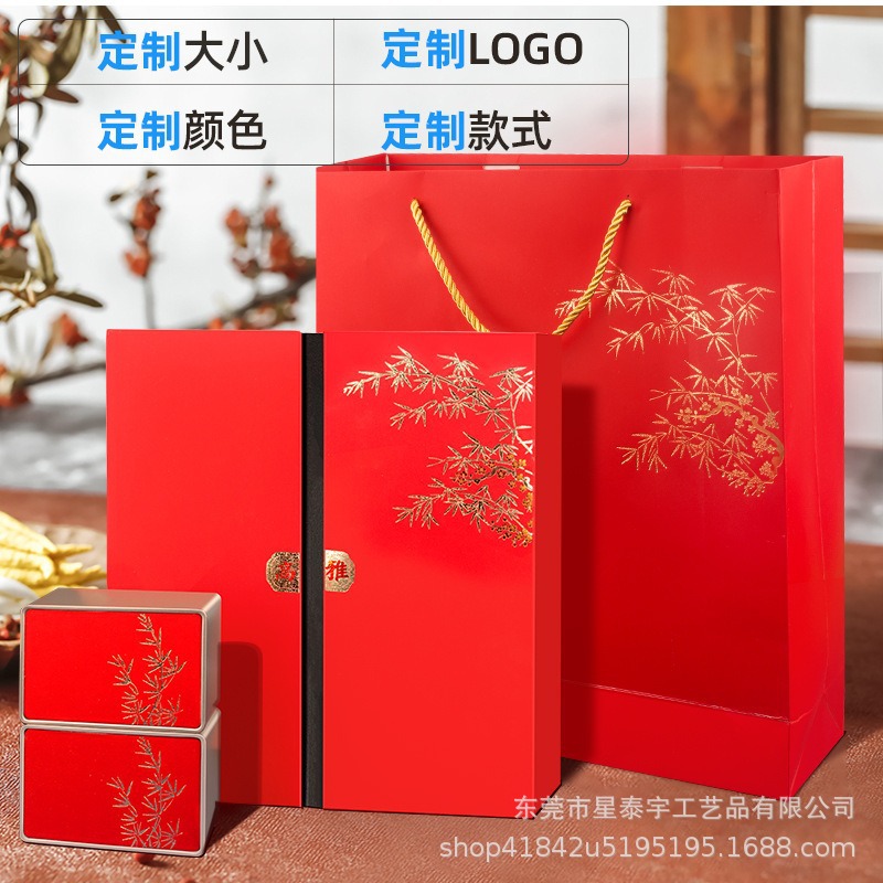 高級レトロ包装箱赤いお祝いのお正月プレゼント小ロット卸売りワイン包装酒茶餅茶葉箱プレゼント