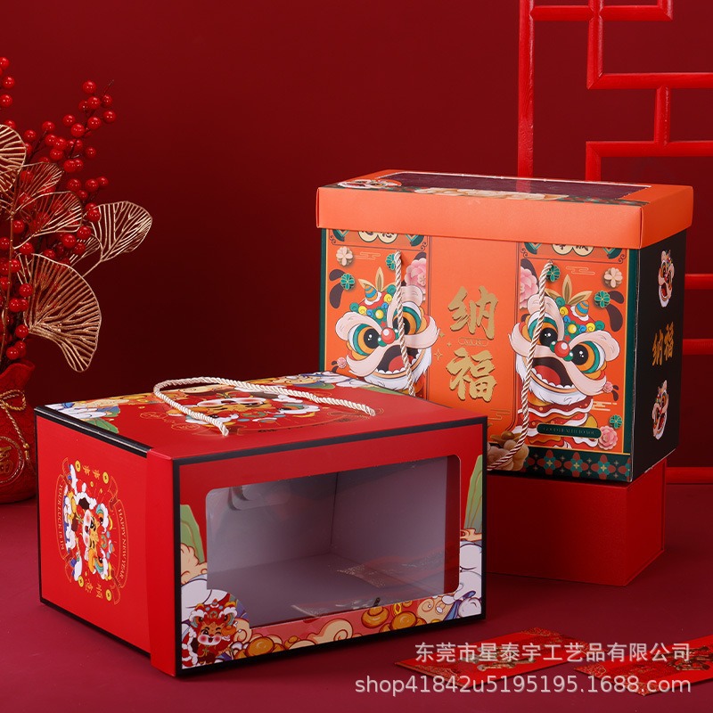 旧正月のおせちギフトボックス窓を開ける天地蓋段ボール折り畳み箱干物特産品包装箱新年ギフトボックスカスタム