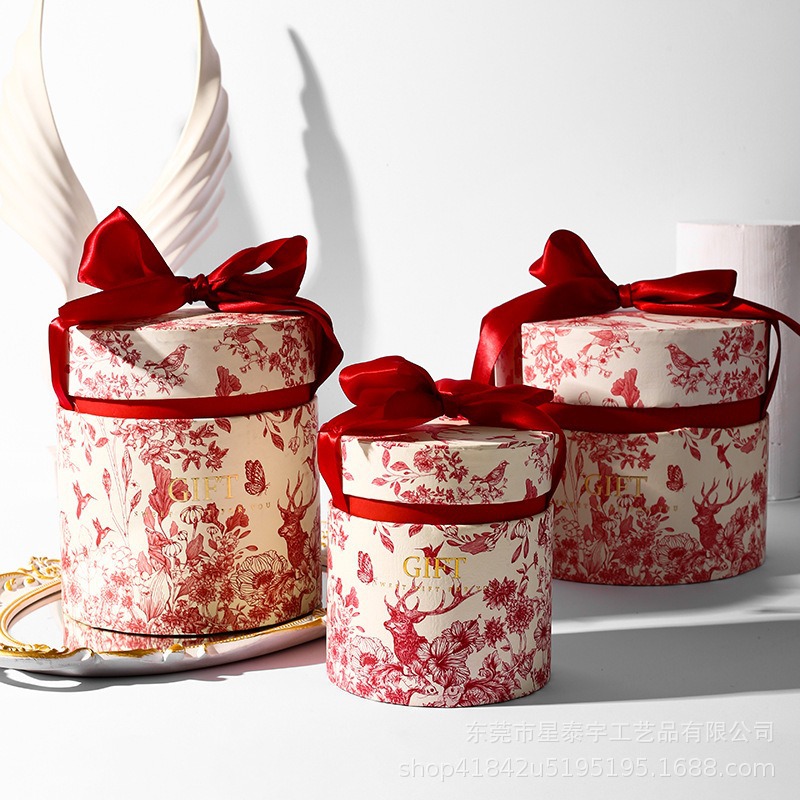 新型インスタ風結婚式お土産セット円形手提げ蓋付ギフトボックス結婚喜糖箱誕生日プレゼントボックス