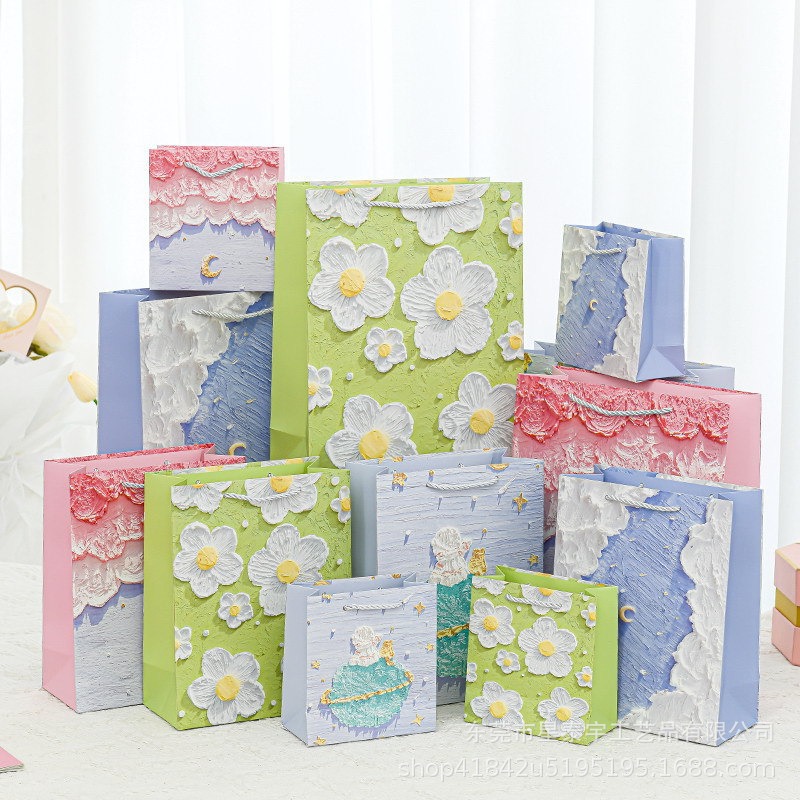 クリエイティブ油絵手提げ袋ギフトバッグ立体感ギフトバッグ誕生日プレゼント袋学生プレゼント包装袋紙袋