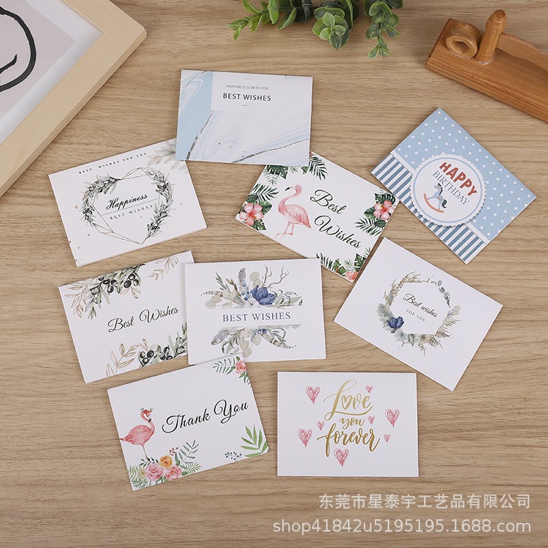 はがきカスタム結婚式グリーティングカード珠光紙小カード印刷高級二つ折り紙カード感謝カードカスタム