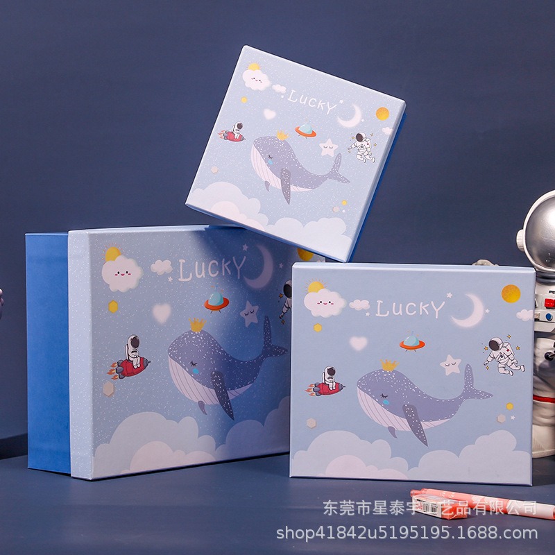 人気の青いアニメ文房具ギフトボックスピンクの天地蓋子供の日のお土産バレンタインデーの包装箱空箱
