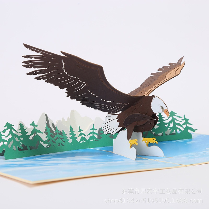 大鵬展翅創意透かし彫り3d立体紙彫刻カード漫画祝福プレゼントカード工場卸売りカスタマイズ