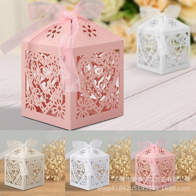 輸出透かし彫り氷白珠光喜糖箱結婚式パーティー花嫁シャワークロスチョコレート箱工場カスタマイズ