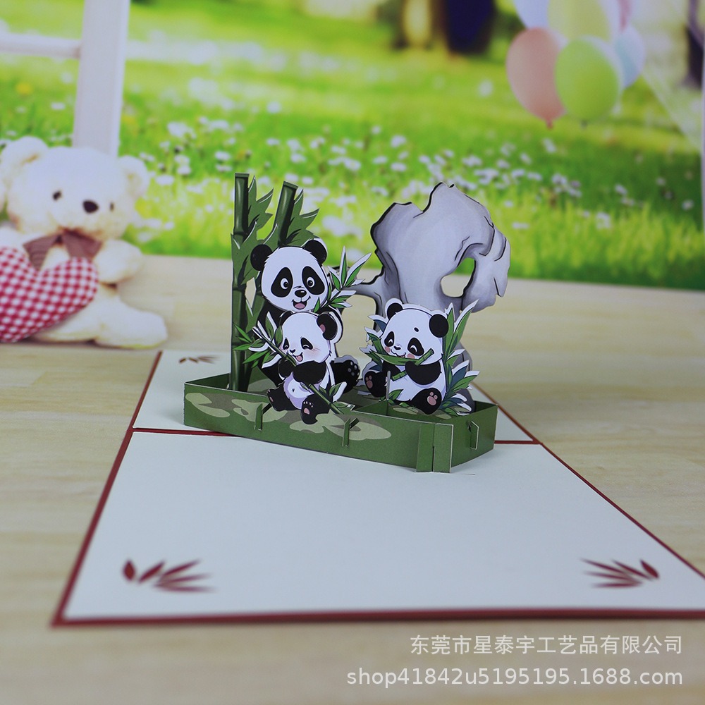 パンダ3d立体グリーティングカード動物模型デザイン招待状子供の日に祝福印刷透かし彫り彫刻メーカーを送る