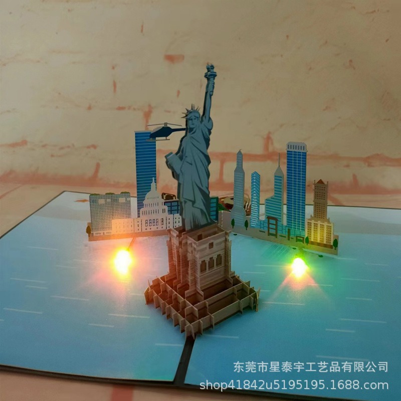 創意科隆教会自由女神七色音楽照明3d立体カード建築模型設計欧米