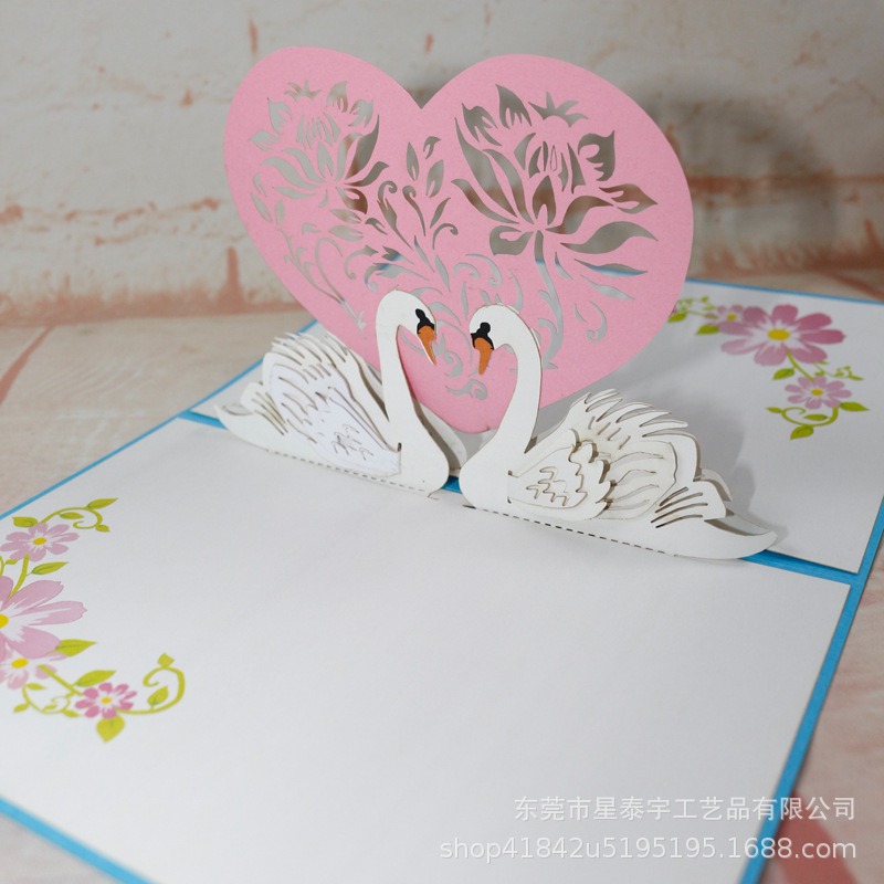 新商品の白鳥の愛の立体のグリーティングカードのバレンタインデーの欧米のアイデアはメッセージカードのピンクのカップルのデザインを祝福します。