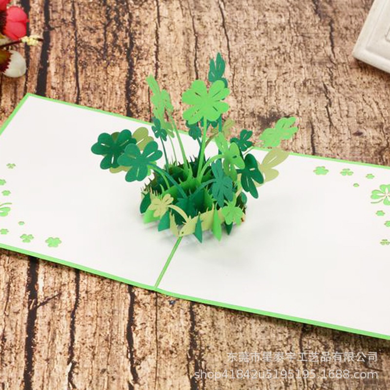 メーカーは立体紙彫刻幸運草3d立体創意透かしカード誕生日祝福カードを供給しています。