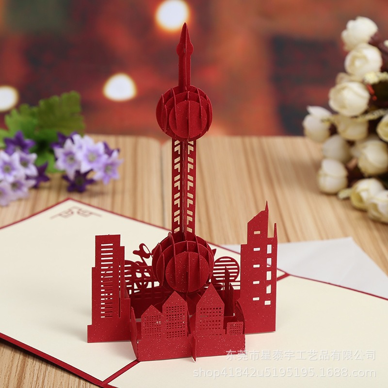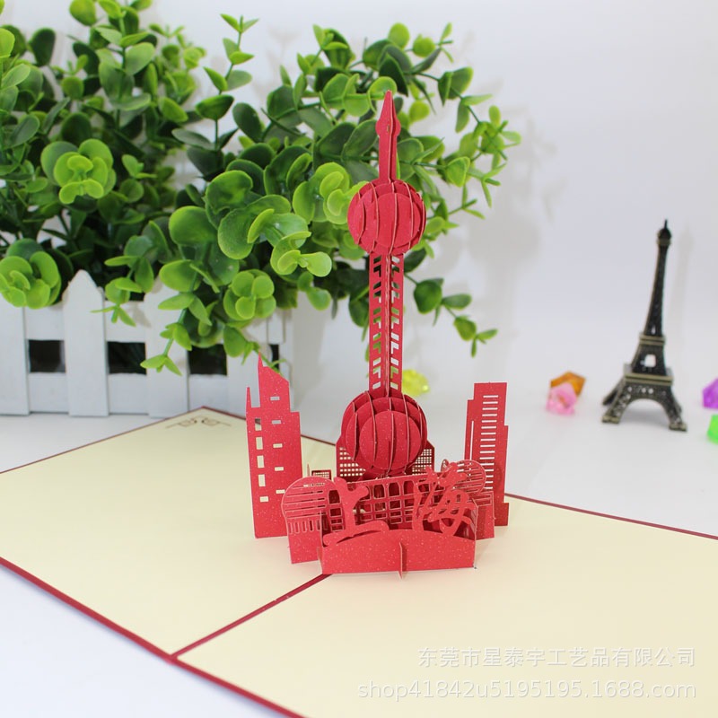 上海東方明珠建築模型3d立体紙彫刻折り畳みグリーティングカード紙工芸品デザイン印刷広告