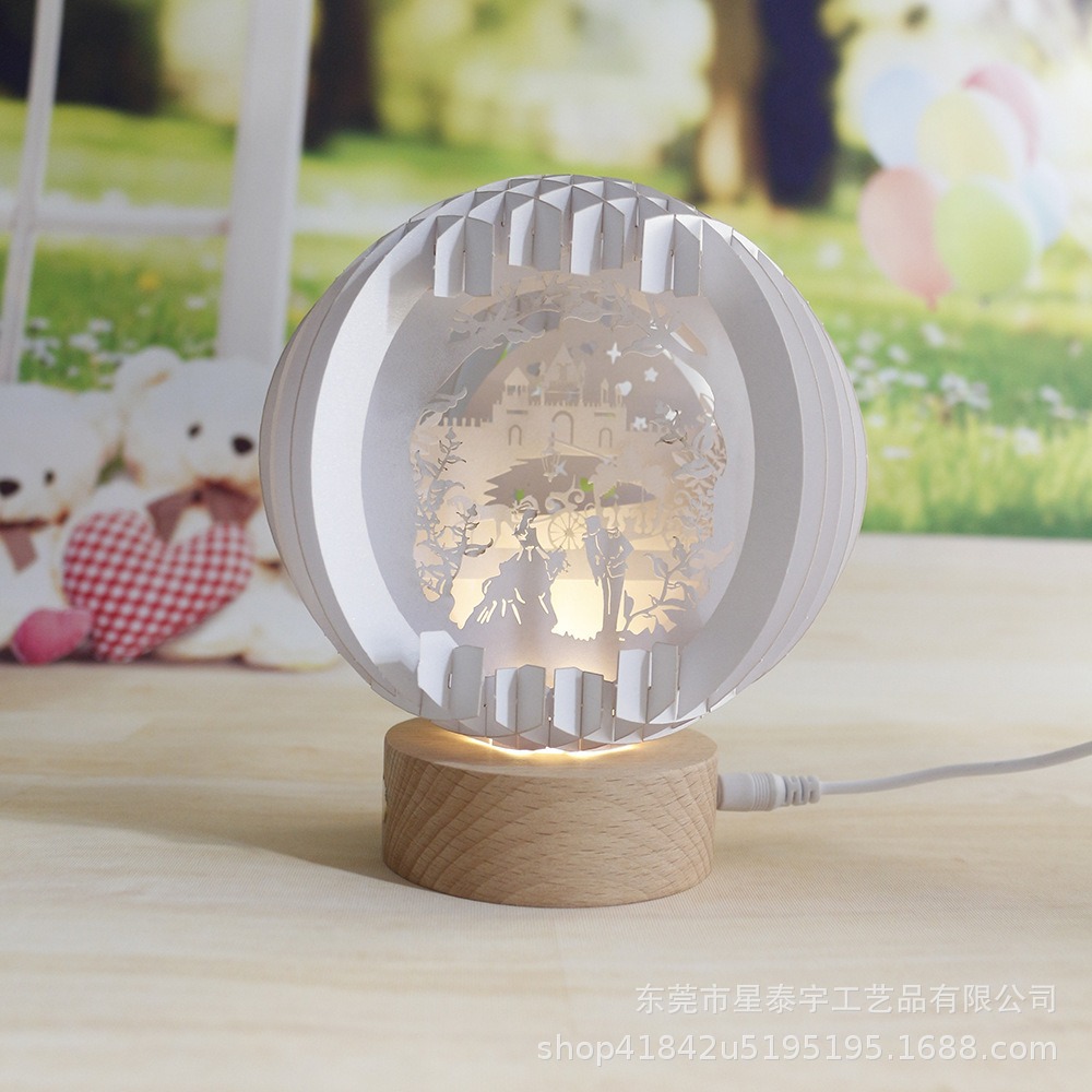 球形の行の王女の紙の彫刻の七色のグラデーションの暖かい光のカードの3d立体のグリーティングカードの誕生日はバレンタインデーの設計を祝福します。
