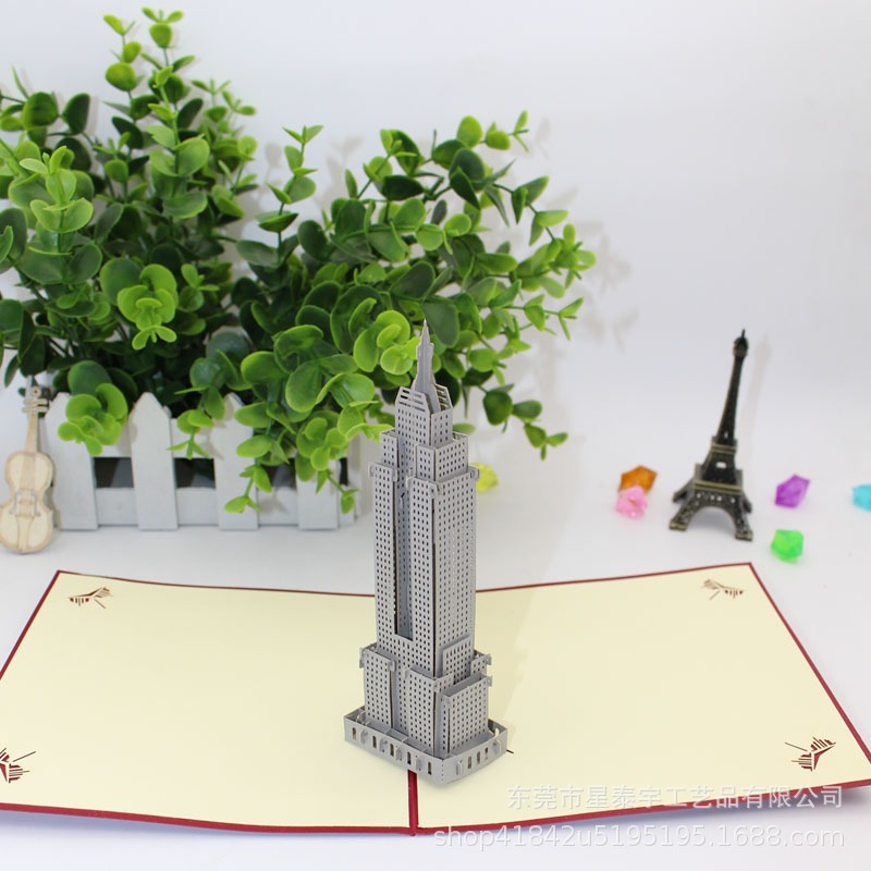 メーカーは美帝ビル建築模型3d立体グリーティングカード紙工芸品彫刻レーザー印刷デザインを提供している
