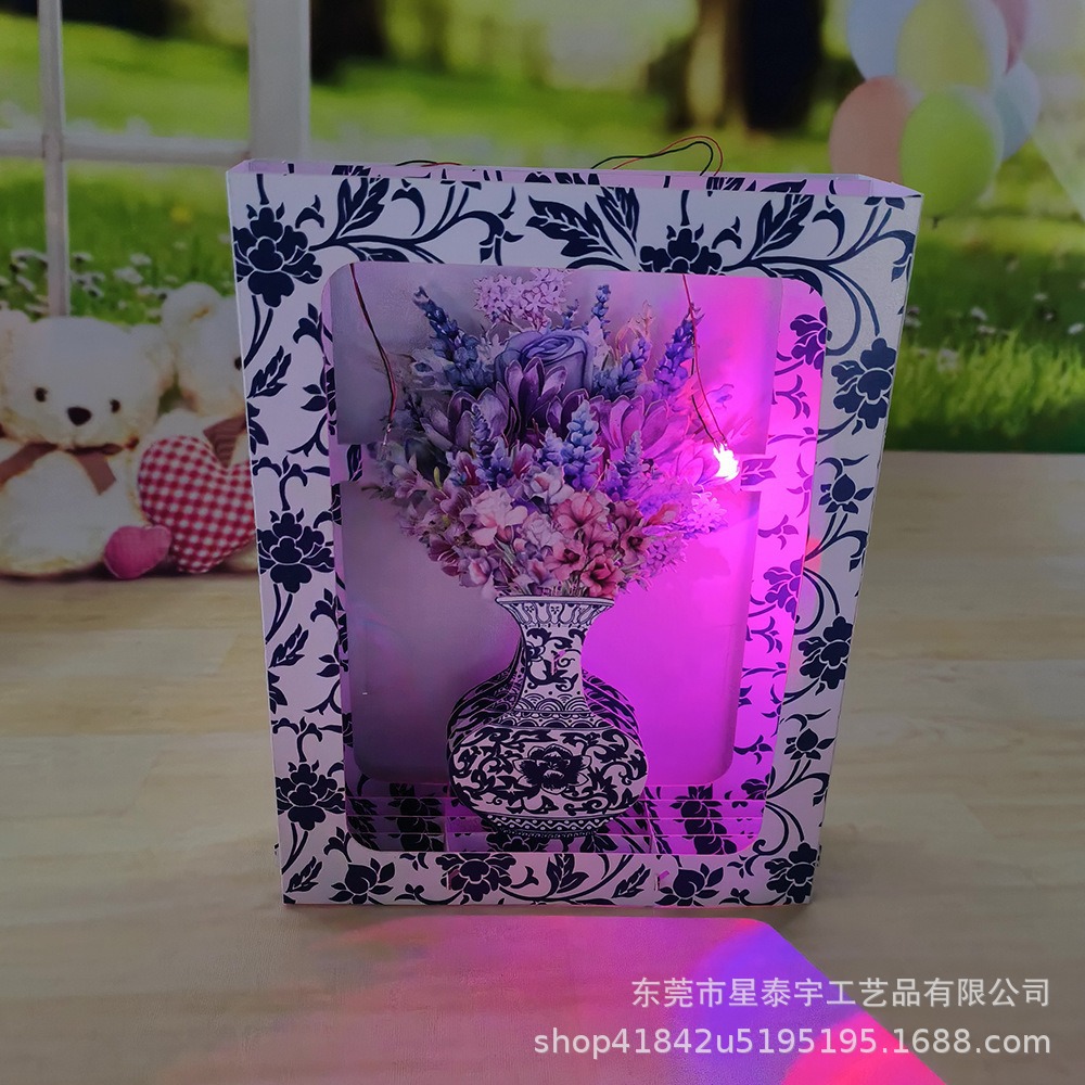 新しい青い花の磁器の生花の箱の音楽の照明の立体の賀状の印刷の紙の彫刻の紙の教師の日の祝福のカード