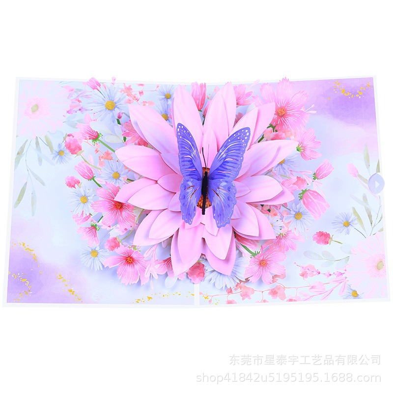 クリエイティブins風ピンク花蝶母の日3d立体グリーティングカード花類ポップアップ誕生日共通カード