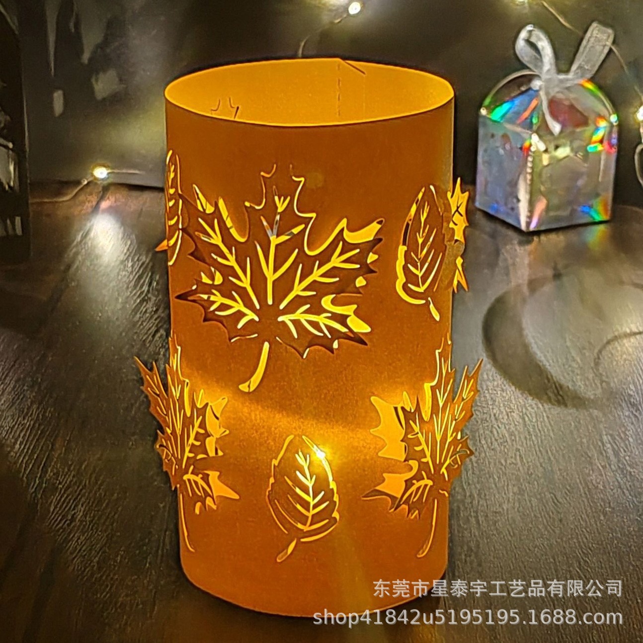 国境を越えた源工場のウェディングパーティーの赤いカエデの葉の紙のランプのカバーの透かし彫りの装飾の夜の明かりの電子のろうそくの紙のカバー