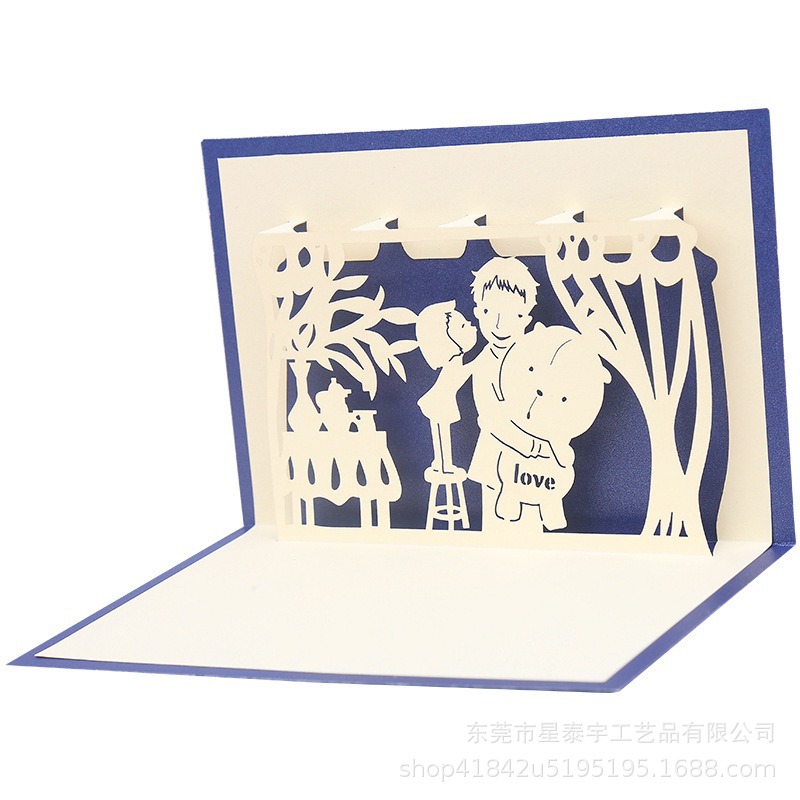 父の日のグリーティングカード紙彫刻3d父愛立体祝日祝福感謝カードはがきカスタムグリーティングカード