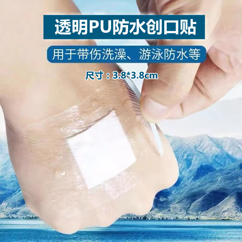 英語透明pu正方形バンドエイド浮針貼り防水透明傷口貼り38*38mm防護貼り