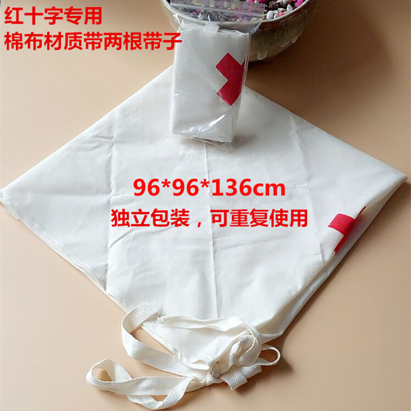 赤十字会の教育訓練は純綿の三角包帯を厚くして、屋外で全綿のひもの三角タオルを包んで固定します。