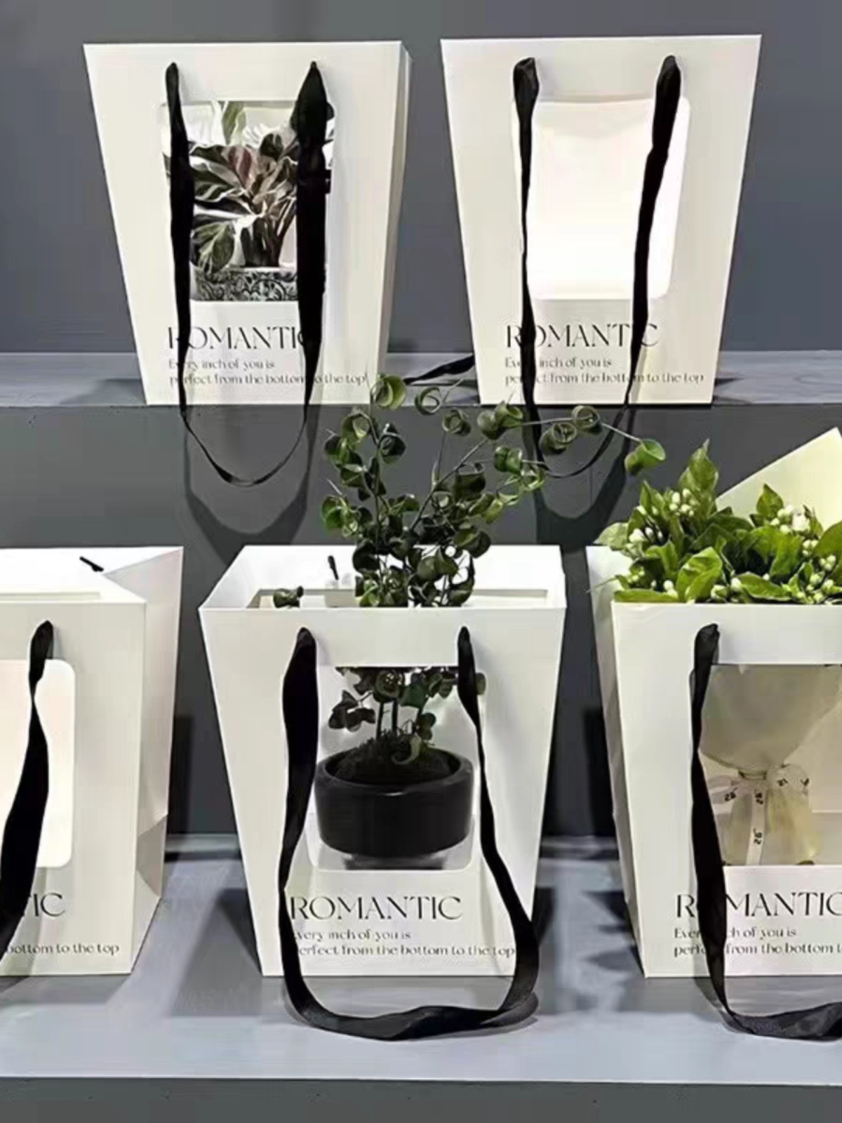 花屋台形開窓手提げ袋生け花t型袋厚シンプル印刷ロゴ包装袋紙プレゼント袋