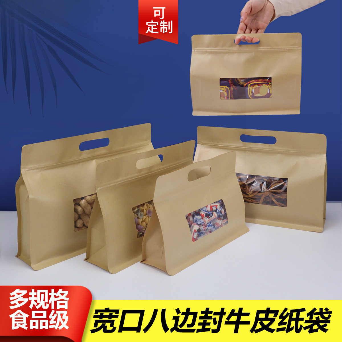 クラフト紙八辺封食品密封袋間食自封包装袋透明ドライフルーツ手作り間食麻花袋