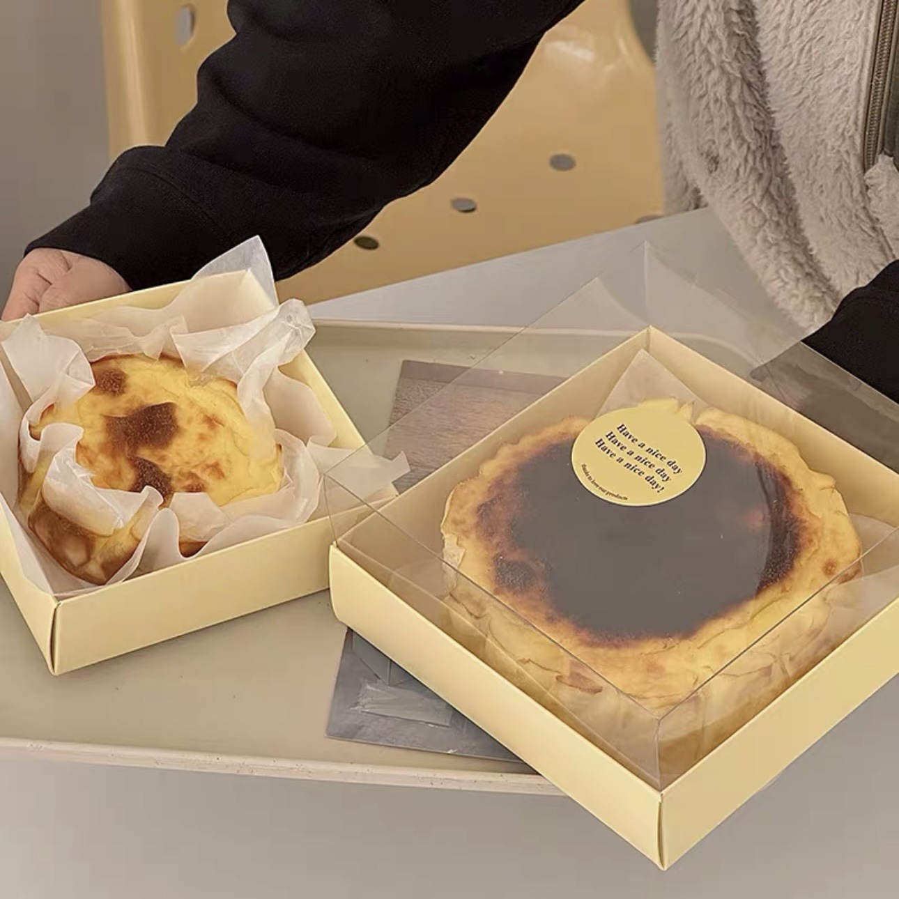 ネット赤4インチ6インチバスクケーキ包装箱軽チーズケーキ包装箱透明シフォンケーキ箱