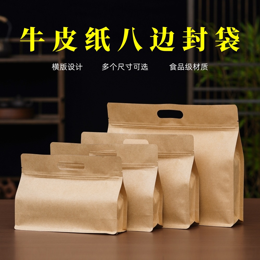 茶葉包装袋クラフト紙袋緑茶紅茶散茶通用密封袋半斤入りの大型密封袋が厚くなっている