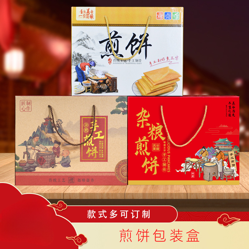 パンケーキ包装箱ギフトボックス純手作りパンケーキ山東雑穀大パンケーキ手提げ段ボール袋卸売り予約