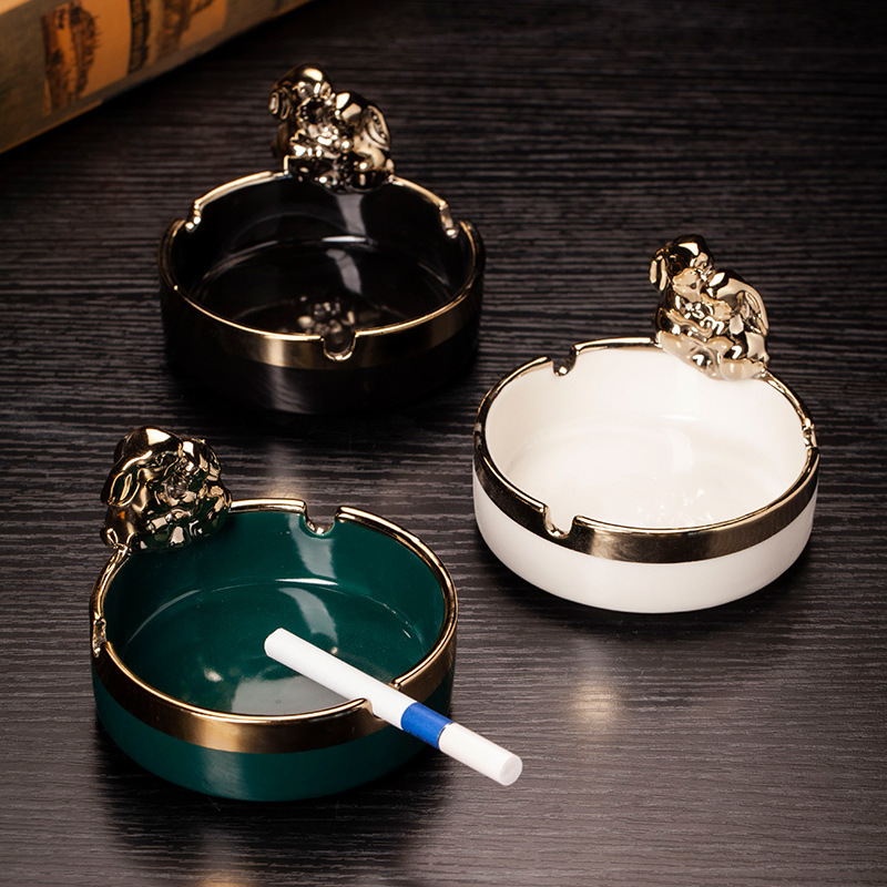 陶磁器招財入宝灰皿防飛灰防煙味高級感創意家庭用蓋付きレトロ可愛い置物
