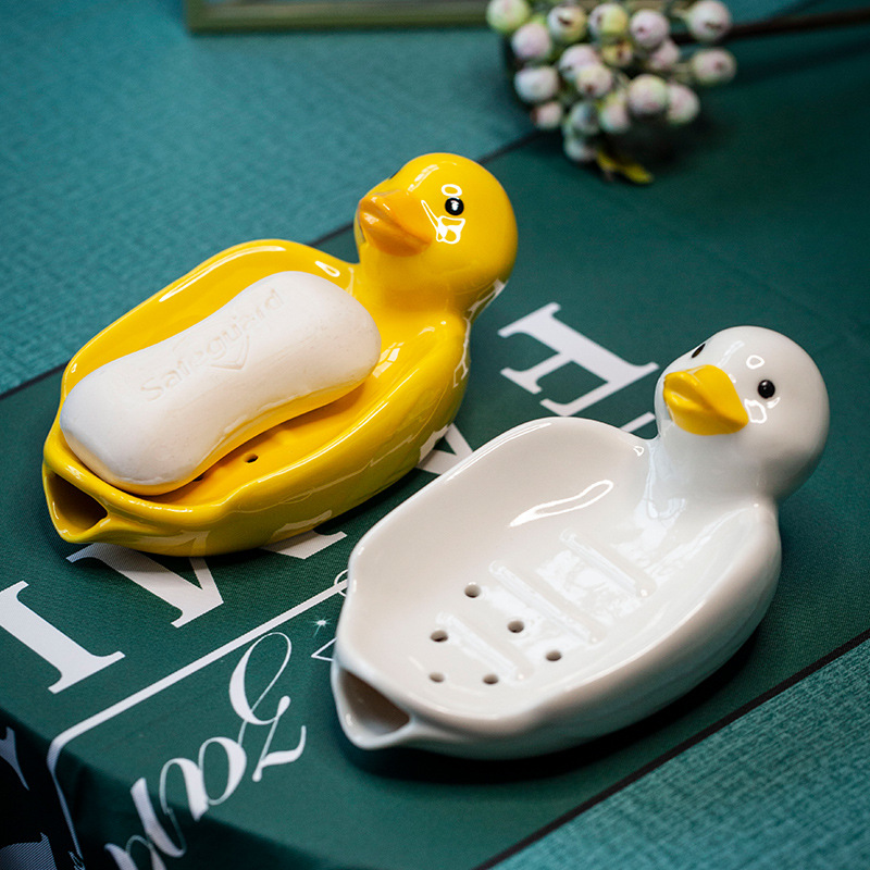 陶磁器の石鹸の箱のアイデアのアヒルの水切りの箱の家庭用のかわいいトイレの石鹸は洗面台の石鹸の箱の石鹸の皿を支えます。