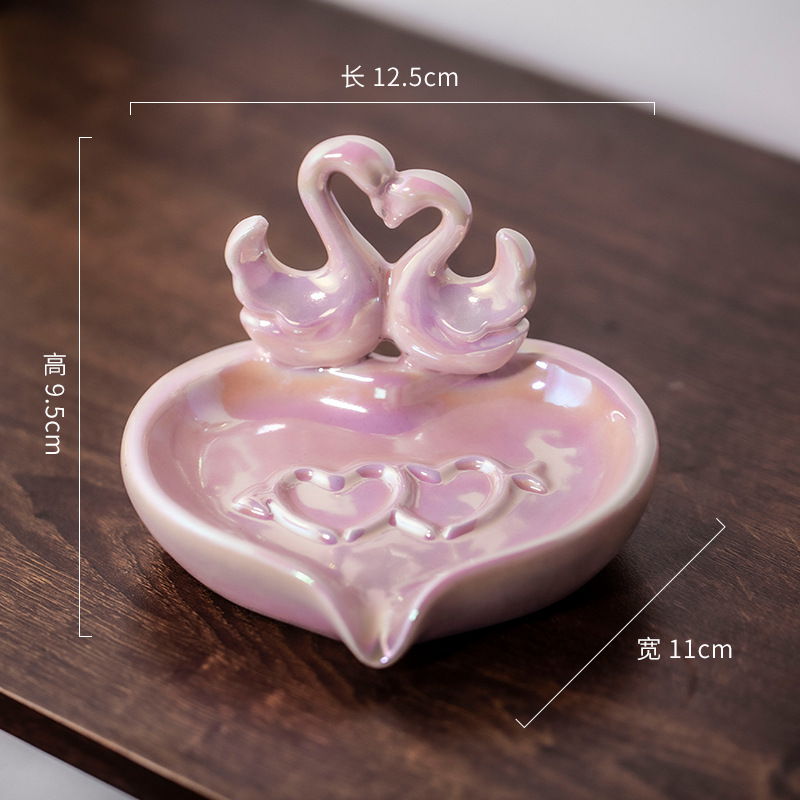 陶磁器の白鳥の石鹸の石鹸の箱の物置棚のかわいい家庭用の高い顔の値の家庭の客間の装飾品のデスクトップの置物