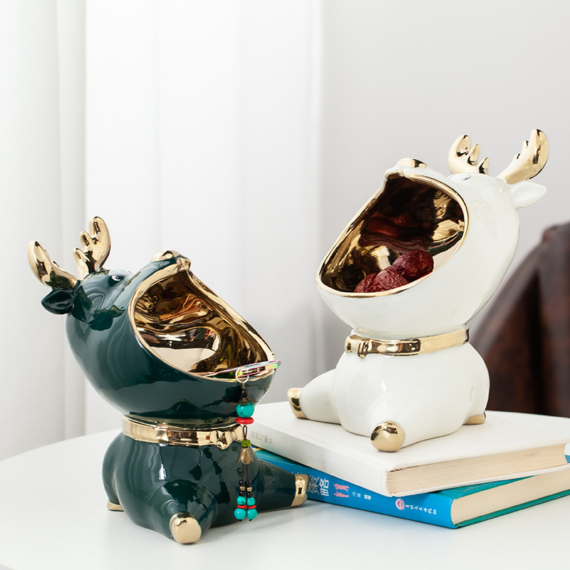 カップルの鹿の陶磁器の置物の客間の軽くて豪華な風の女の子の鍵はデスクトップのかわいい家の玄関の装飾品を収納します。