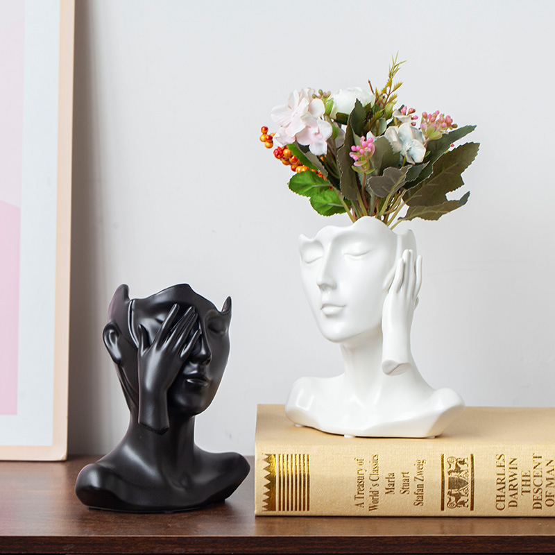 陶磁器の人物の顔の花瓶の家庭の客間の装飾品の引っ越しの贈り物の装飾品の生け花のシミュレーションの花の創意風の置物