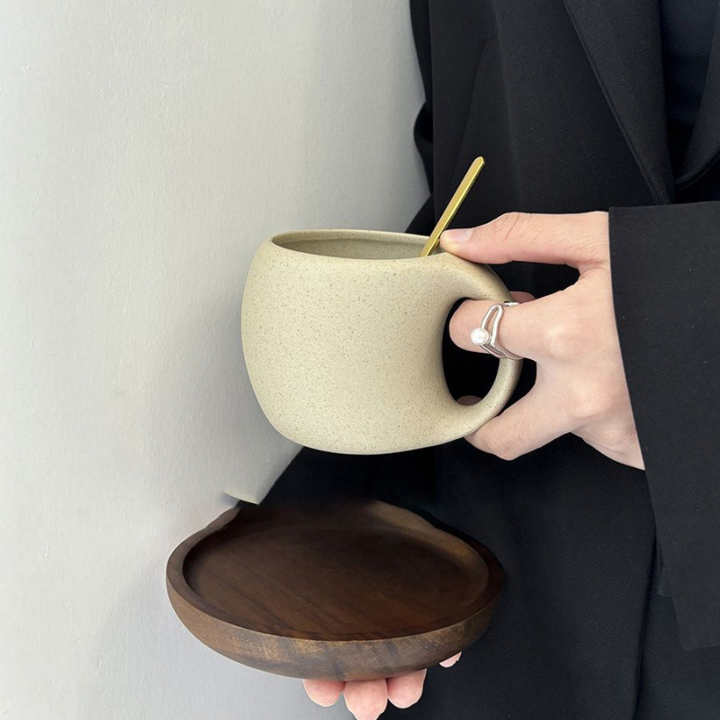 和風の質感の陶器製コーヒーカップ&ソーサーセット クリエイティブなマグカップ ラテアフタヌーンティーカップ 釉下彩手描き