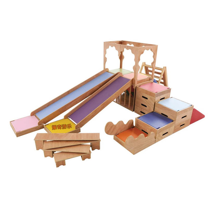 軟体宝運動の組み合わせ. 幼稚園の木製滑り台. 英貝宝早教運動の組み合わせ。