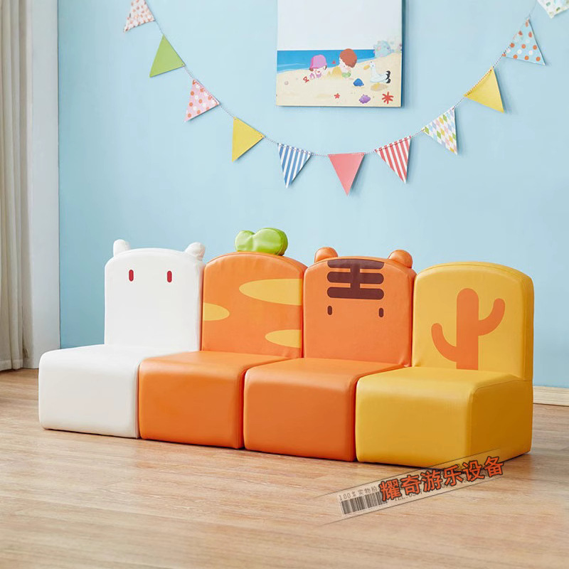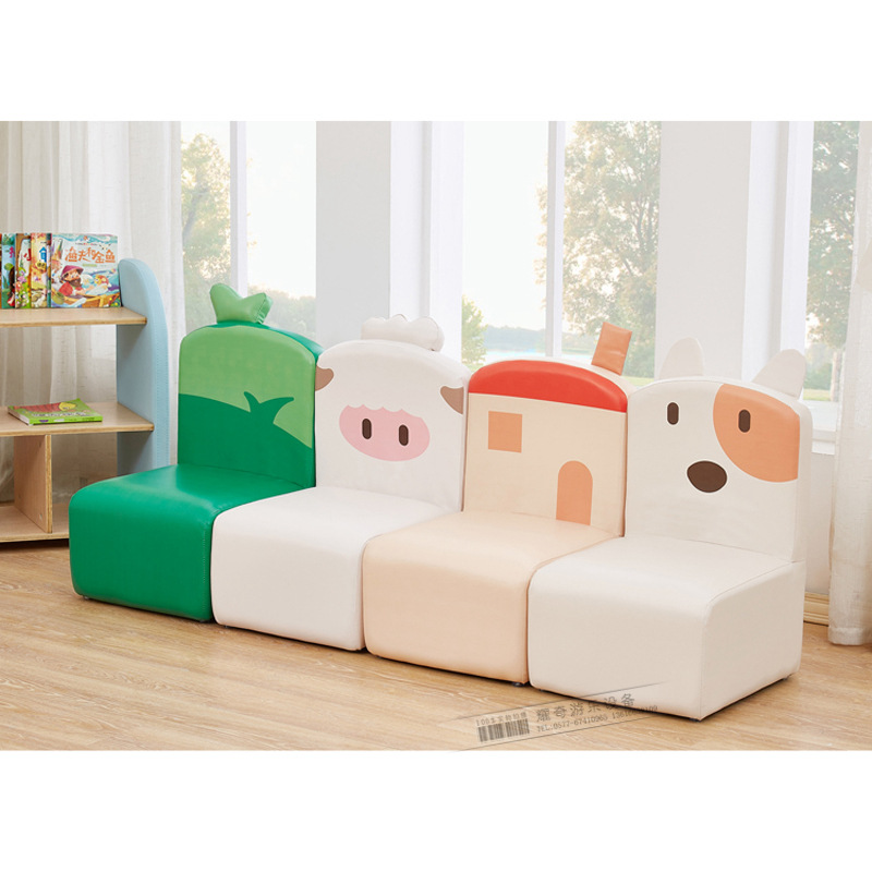 漫画動物組み合わせソファ子供革ソファ. 早教センター幼稚園ホール休憩エリア長椅子
