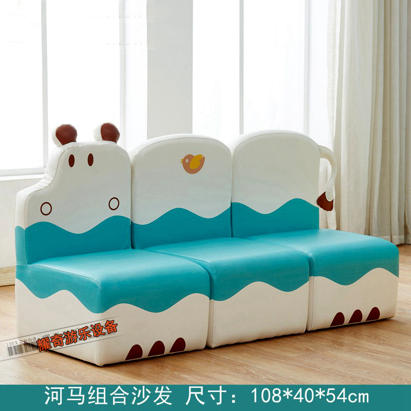 漫画カバのソファー子供動物の組み合わせ皮ソファー. 早教センター幼稚園ホールの長い椅子
