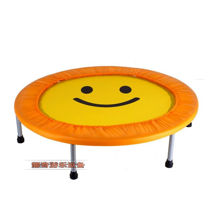 幼稚園の親子園の子供の笑顔のトランポリンの幼児はベッドを跳びます。